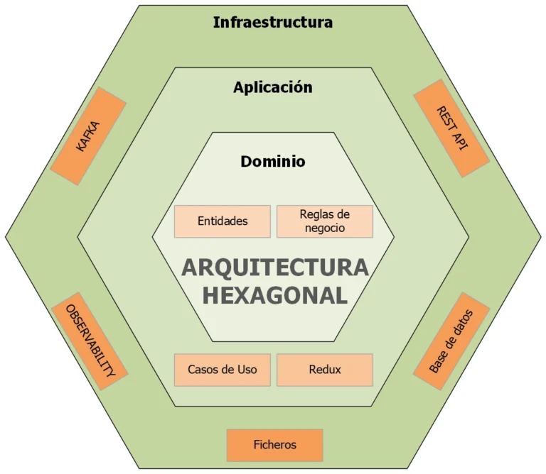 Aplicamos esta arquitectura para asegurar que el dominio del negocio (esto es, las reglas de negocio que rigen en su empresa) esté desacoplado de los diferentes recursos externos, ya sean REST APIs, Bases de Datos, sistemas de streaming de mensajería como Kafka, etc.